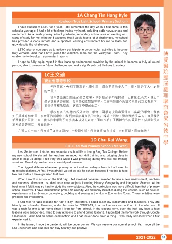 Last September, I started my secondary school life in Leung Sing Tak College. Before