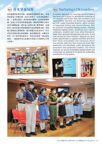 營、培訓工作坊和學生會議課程,讓他們在體驗活動和 an LCK Leader Nurturing Scheme, which consists