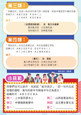 同學們也可以試作,先試試「就句迴文」,即一句內完成