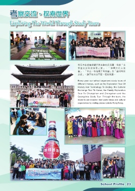 so as to practise the school's philosophy of 京歷史及科技探索之旅」、「韓國文化交流