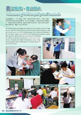 士、教授長者使用智能手機、協助長者進行家居清潔、售旗及清潔校園等,