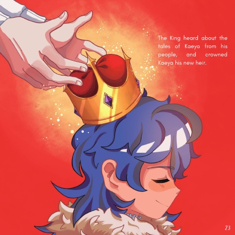 The King heard about the tales of Kaeya from his people, and crowned Kaeya his new heir. 23