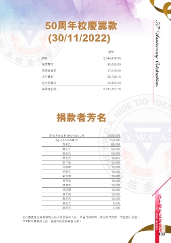衷心感謝各位慷慨捐款支持本校發展的人仕,所籌得的款項,將用於學與教、學生個人發展、 50 th Anniversary