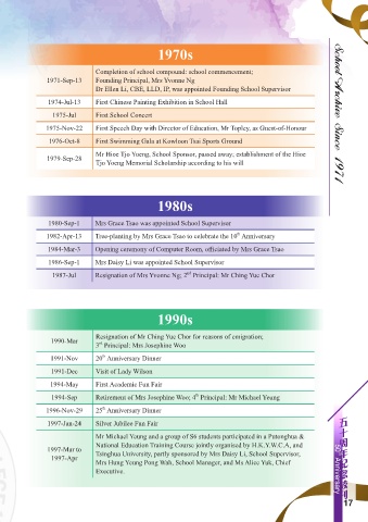 1994-Sep Retirement of Mrs Josephine Woo; 4 Principal: Mr Michael Yeung 念 校 刊 十 五 周 紀 年