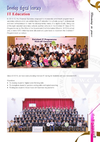 of the eight selected secondary schools (partner schools) in the Enriched IT Class (EITC) Blooming in grace