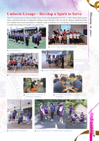 The 67 Kowloon Scouts Troop and Red Cross YU125 were established at HTYC in 1985. Both uniform groups