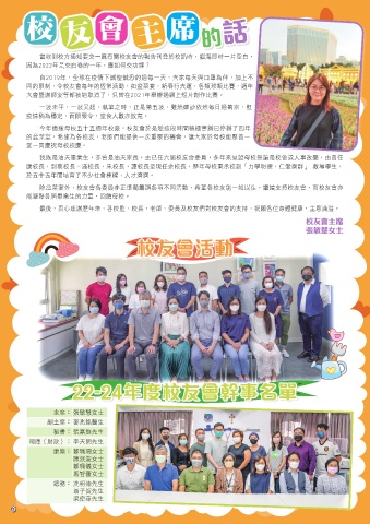 最後,衷心感謝歷年來,各校監、校長、老師、委員及校友們對校友會的支持,祝願各位身體健康,主恩滿溢。