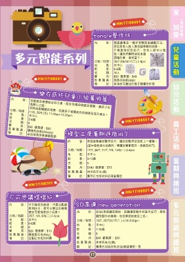 多元智能系列 日期/時間: 18/7-8/8/2017(二) 3-4pm