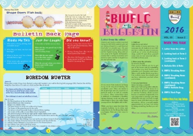 Hazel Yu (4A), Shirley Mo (4D), period. our English speaking skills and we can learn author has a favourite drink, hobby and book. perform well in as well as outside in summer holiday, albeit tutorial 8. BWFLC Back Page