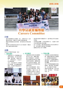 - 另外,本組老師向中三同學講 程以外的其他升學途徑,並指 更多體驗。