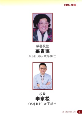 2015-2016 榮譽校監 ᅃ MBE BBS 太平紳士 校監 ҽؒ OStJ B.H. 太平紳士 AD & FD POHL LSTC 3