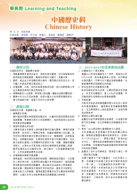 情智並重。在研習民族融和的過程、國家發展的歷史,以及歷 活動可讓學生了解中國歷史、文化及風土人