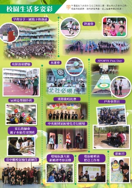 校園生活多姿彩 學 增進同儕感情,提高研習興趣,建立積極樂觀的態度。 生積極投入參與多元化活動與比賽,藉著校內及校外活動, 早會分享︰國旗下的講話 陸運會 SPORTS Fun Day 水運會 攻防箭初體驗 氣球造型創作班 班際歌唱比賽 戶外學習日 中英劇團氣候變化奇幻劇場 家長教師會 親子水仙花切割班 捐血日 環境保護大使 環保咖啡渣 官中聯校領袖生訓練營 新娘潭考察活動 肥皂工作坊