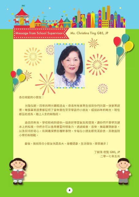 Message from School Supervisor Ms. Christina Ting GBS, JP