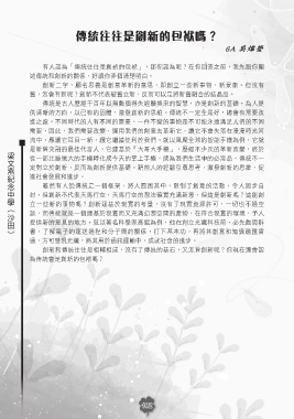 雖然有人說傳統是一個框架,將人囿困其中,限制了創意的活動,令人固步自
