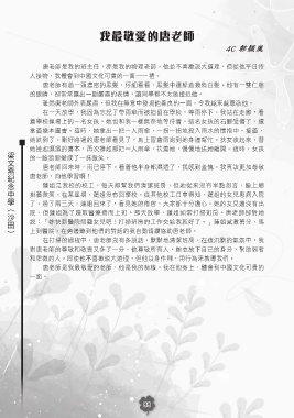 雖然唐老師外表嚴肅,但我在無意中發現他善良的一面,令我越來越尊敬他。