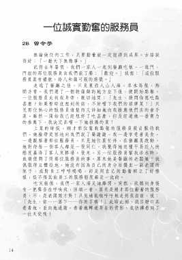 態度贏得了客人來捧場。後來,另一位服務員幫我添水時,