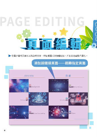 PAGE EDITING 在電子書的頁面可以為您的文字、網址或圖片添加超鏈接,并且自定義動作屬性。 添加超鏈接頁面 跳轉指定頁面 COTENTS 目 錄 01 04 背景/Background 頁面編輯/Page Editing 02 05 Release/發布 Security/安全 03 06 界面設定/Interface Setting 分享/Share 8
