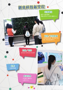 創意科技新里程 主辦單位 香港小童群益會 馬鞍山東青少年綜合服務中心 協辦/合辦機構 香港傷健協會 賽馬會沙田 青少年綜合服務中心 日期/時間 2016年11月至2017年2月 地點 香港科學園 參與對象 沙田區12歲或以 上青少年人 16
