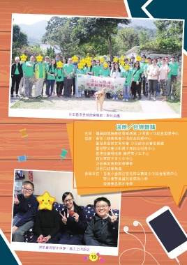 沙田區家長教師會聯會:野外拍攝 協辦/合辦機構 合辦:循道衛理楊震社會服務處 沙田青少年綜合發展中心 協辦: 東華三院賽馬會沙田綜合服務中心 香港基督教女青年會 沙田綜合社會服務處 香港聖公會沙田青少年綜合服務中心 香港遊樂場協會 顯徑青少年中心 救世軍隆亨青少年中心 沙田區家長教師會聯會 沙田民政事務處 參與單位:香港小童群益會馬鞍山東青少年綜合服務中心 聖公會聖基道兒童院同心牽 浸信會呂明才中學 浸信會呂明才中學:義工上門探訪 19