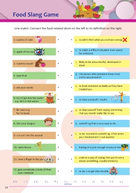 Line match: Connect the food-related idiom on the left to its defi niti on on the right