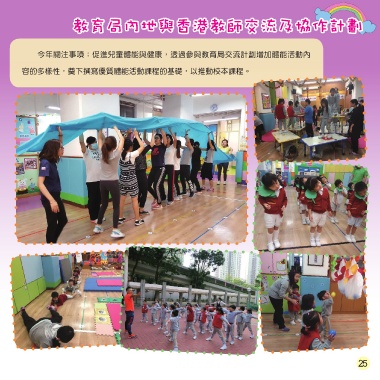 教育局內地與香港教師交流及協作計劃 今年關注事項:促進兒童體能與健康,透過參與教育局交流計劃增加體能活動內 容的多樣性,奠下撰寫優質體能活動課程的基礎,以推動校本課程。 25