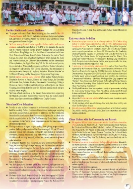 forum, inter-class competitions and Halloween Cosplay Contest. We provide 42 extra-curricular activities which cover the areas of academic, sports,