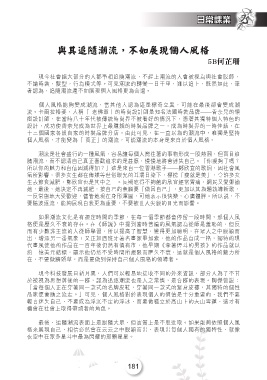 最後,追隨潮流表面上是跟隨大眾,但實質上是不思進取。如果能夠依照個人風
