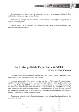 Last year, I had my first Athletics Meet in Sun Fong Chung College. I was very happy