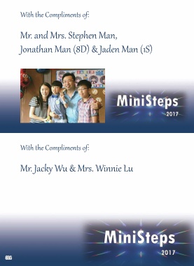 With the Compliments of: Mr. and Mrs. Stephen Man, Jonathan Man (8D) & Jaden Man (1S) With the Compliments of: Mr. Jacky Wu & Mrs. Winnie Lu 314