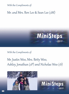 With the Compliments of: Mr. and Mrs. Ben Lee & Sean Lee (2M) With the Compliments of: Mr. Justin Woo, Mrs. Betty Woo, Ashley, Jonathan (2P) and Nicholas Woo (1S) 318