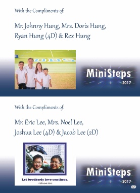With the Compliments of: Mr. Johnny Hung, Mrs. Doris Hung, Ryan Hung (4D) & Rex Hung With the Compliments of: Mr. Eric Lee, Mrs. Noel Lee, Joshua Lee (4D) & Jacob Lee (2D) 329