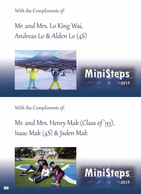 With the Compliments of: Mr. and Mrs. Lo King Wai, Andreas Lo & Alden Lo (4S) With the Compliments of: Mr. and Mrs. Henry Mak (Class of '93), Isaac Mak (4S) & Jaden Mak 336