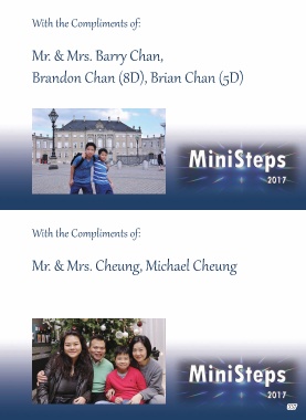 With the Compliments of: Mr. & Mrs. Barry Chan, Brandon Chan (8D), Brian Chan (5D) With the Compliments of: Mr. & Mrs. Cheung, Michael Cheung 337