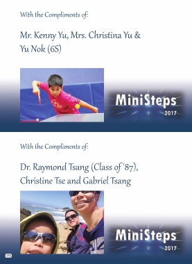 With the Compliments of: Mr. Kenny Yu, Mrs. Christina Yu & Yu Nok (6S) With the Compliments of: Dr. Raymond Tsang (Class of '87), Christine Tse and Gabriel Tsang 350