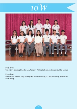 10W Back Row: Genevieve Cheung, Phoebe Lee, Andrew Millar, Ralphie Au Yeung, Kiu Nga Leung Front Row: Ieejin Park, Amber Ting, Audrey Ho, Ms Annie Wong, Nicholas Cheung, Morris Ho, Felix Wong 116
