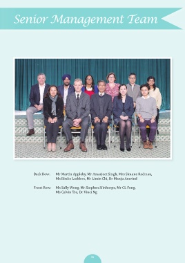 Senior Management Team Back Row: Mr Martin Appleby, Mr Amarjeet Singh, Mrs Simone Redman, Ms Birdie Lodders, Mr Limin Chi, Dr Manju Aravind Front Row: Ms Sally Wong, Mr Stephen Sibthorpe, Mr CL Fong, Ms Calvin Tse, Dr Vinci Ng 10