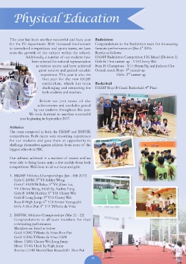 for the PE department. With increased involvement Congratulations to the Badminton team for showcasing