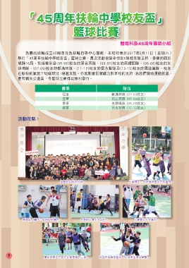 舉行「45周年扶輪中學校友盃」籃球比賽,是次活動很榮幸得到6隊校友隊支持,參賽的屆別