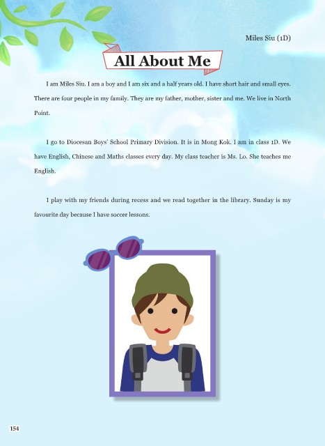 I go to Diocesan Boys’ School Primary Division. It is in Mong Kok. I am in class 1D. We