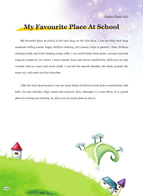 My favourite place at school is the tuck shop on the first floor. I can see busy tuck shop