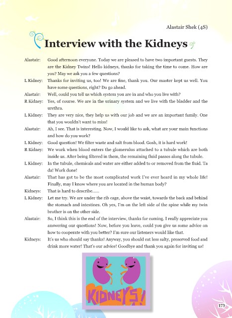 L Kidney: Good question! We filter waste and salt from blood. Gosh, it is hard work!