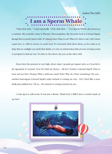 “Click click click…” I said repeatedly. “Click click click…” I’m a Sperm Whale, also known as