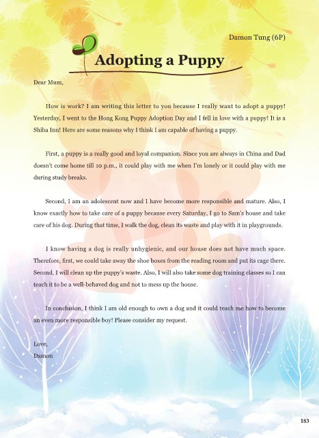 How is work? I am writing this letter to you because I really want to adopt a puppy!