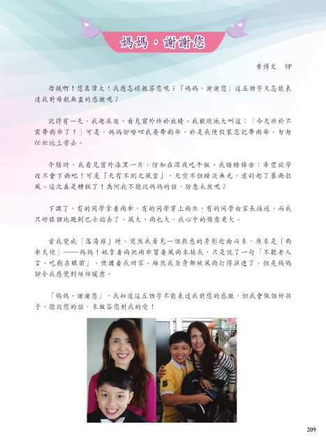 需帶雨傘了!」可是,媽媽卻嘮叨我要帶雨傘,於是我便假裝忘記帶雨傘,匆匆