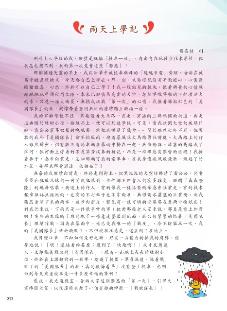 徑,終於在上課鐘前的一剎那,踏進了校園。渾身濕透、拖着戰