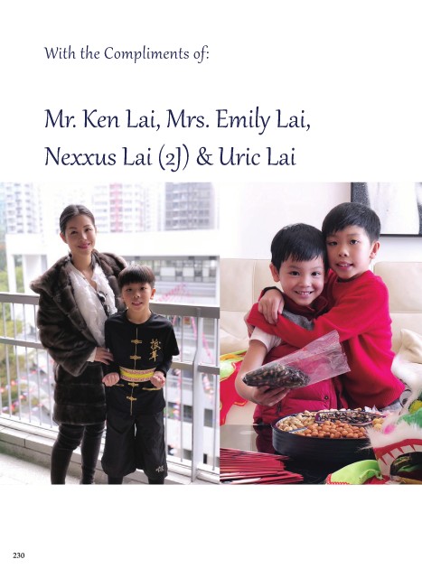 With the Compliments of: Mr. Ken Lai, Mrs. Emily Lai, Nexxus Lai (2J) & Uric Lai 230