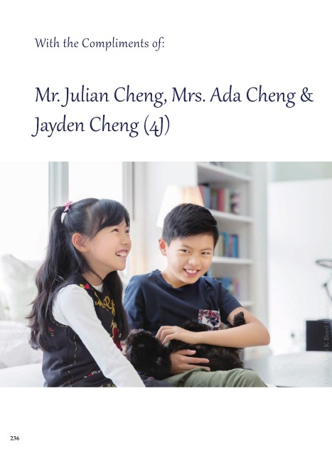 With the Compliments of: Mr. Julian Cheng, Mrs. Ada Cheng & Jayden Cheng (4J) 236