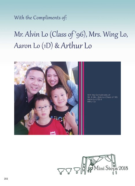 With the Compliments of: Mr. Alvin Lo (Class of '96), Mrs. Wing Lo, Aaron Lo (1D) & Arthur Lo 252