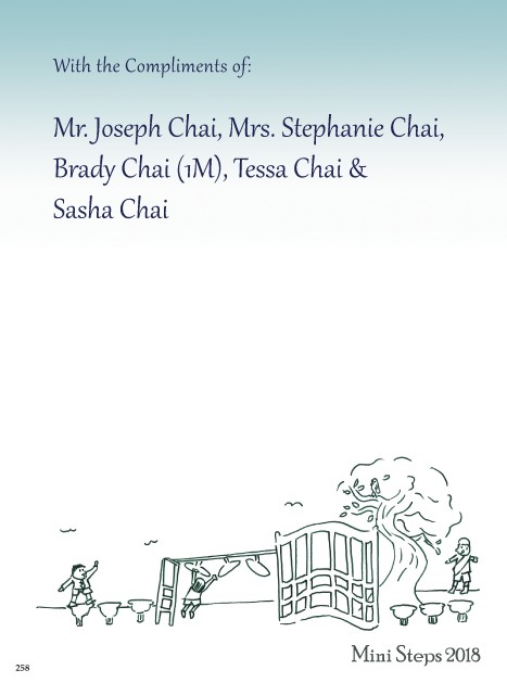 With the Compliments of: Mr. Joseph Chai, Mrs. Stephanie Chai, Brady Chai (1M), Tessa Chai & Sasha Chai 258